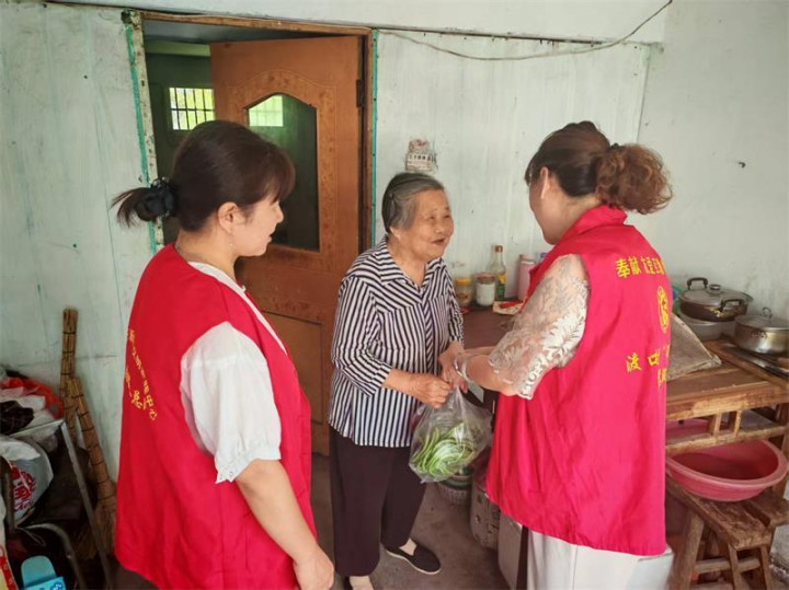 志愿者为辖区老人送上爱心蔬菜。
